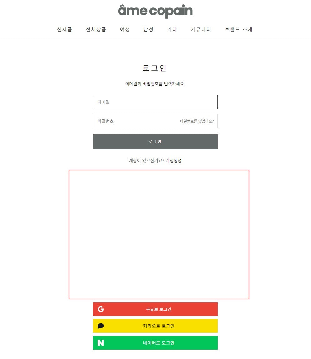 가끔 일반 로그인과 소셜로그인 사이에 여백이 발생하는 경우가 있습니다.